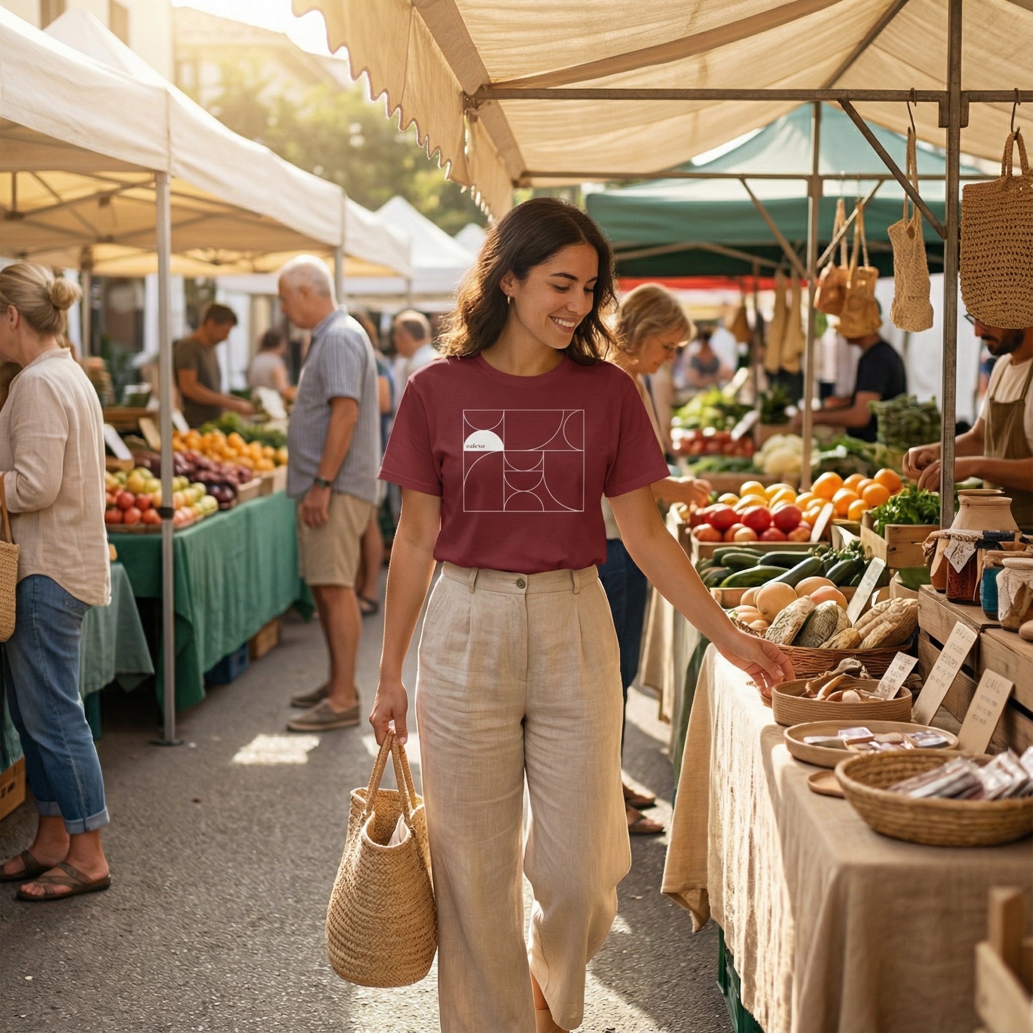 Inspired by Art Deco restraint, this organic cotton tee blends clean structure with everyday ease. Minimal linework makes a quiet statement, while the soft, medium-weight...